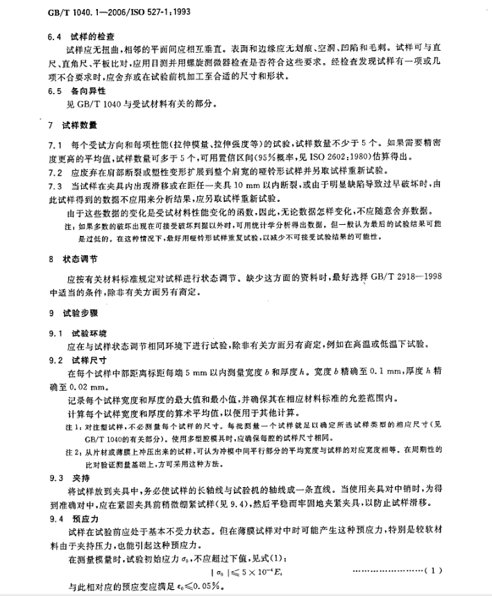 GB/T 塑料拉伸性能的測定